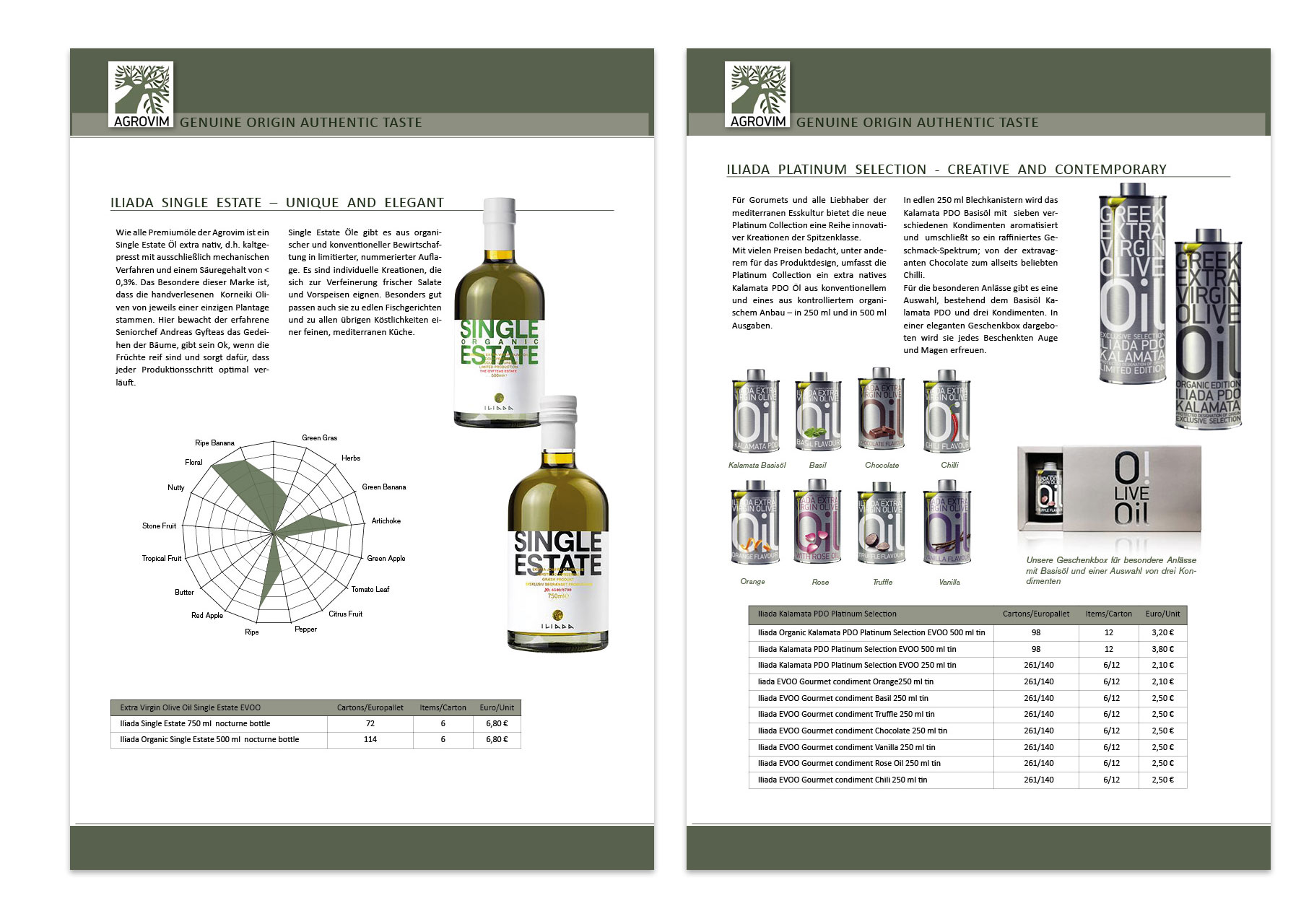 Für den Vertrieb griechischer Produkte - Erstellung von Foldern und online-pdf-Präsentationen.