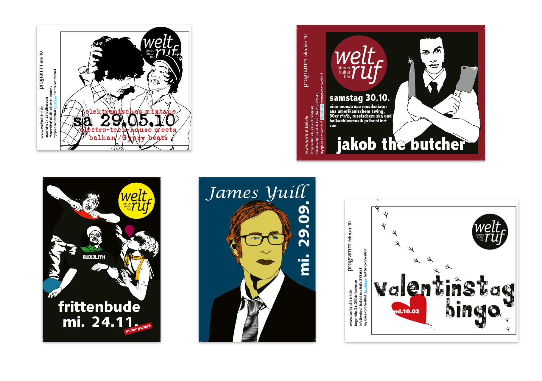 Erstellung von Plakaten und Monatsprogrammen für Konzert- und Veranstaltungsankündigungen im Weltruf / Kiel.