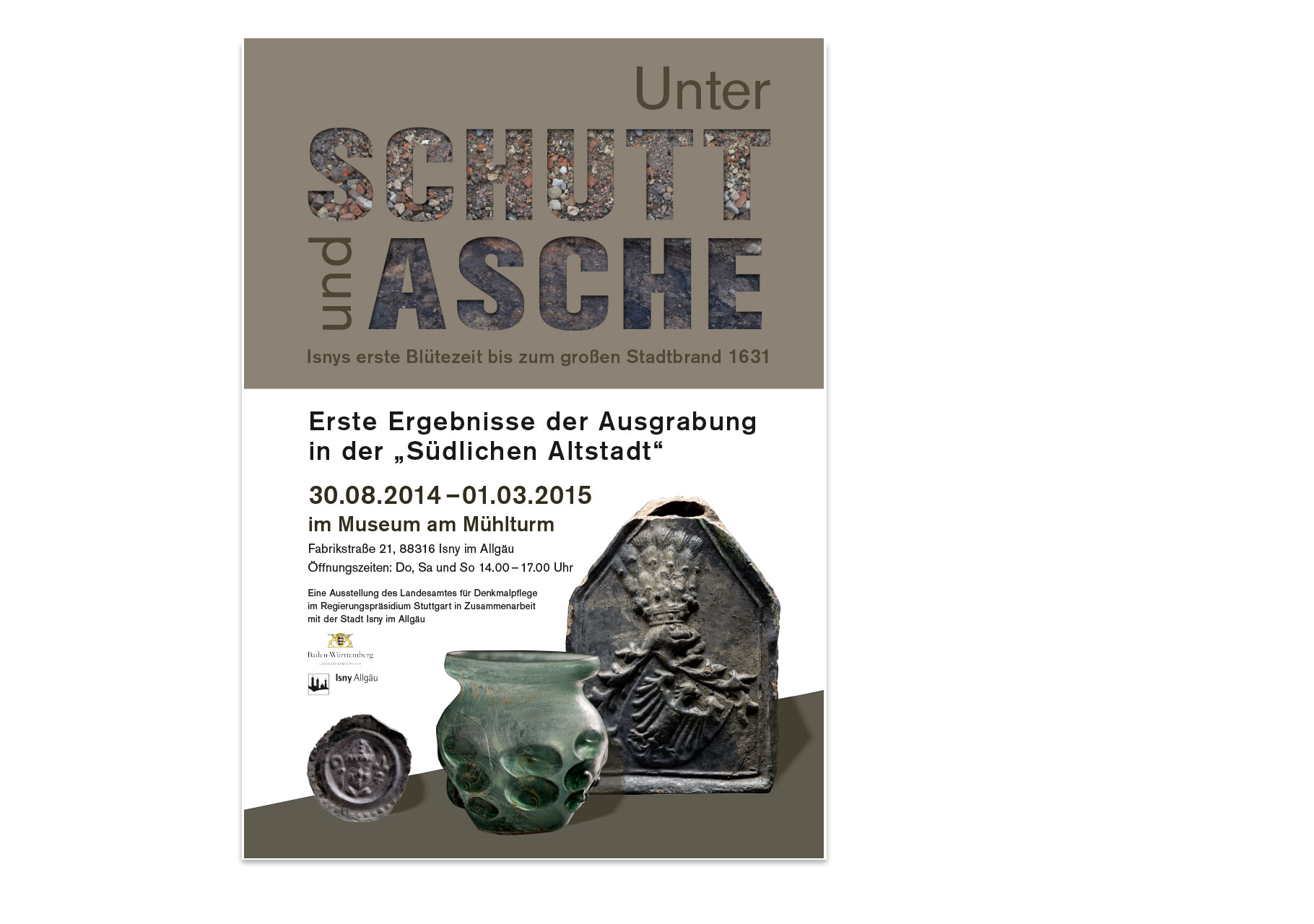 Für die Ausstellung über Ausgrabungen und Funde in Isny - Erstellung von Ausstellungstafeln, Flyern und Plakaten.
